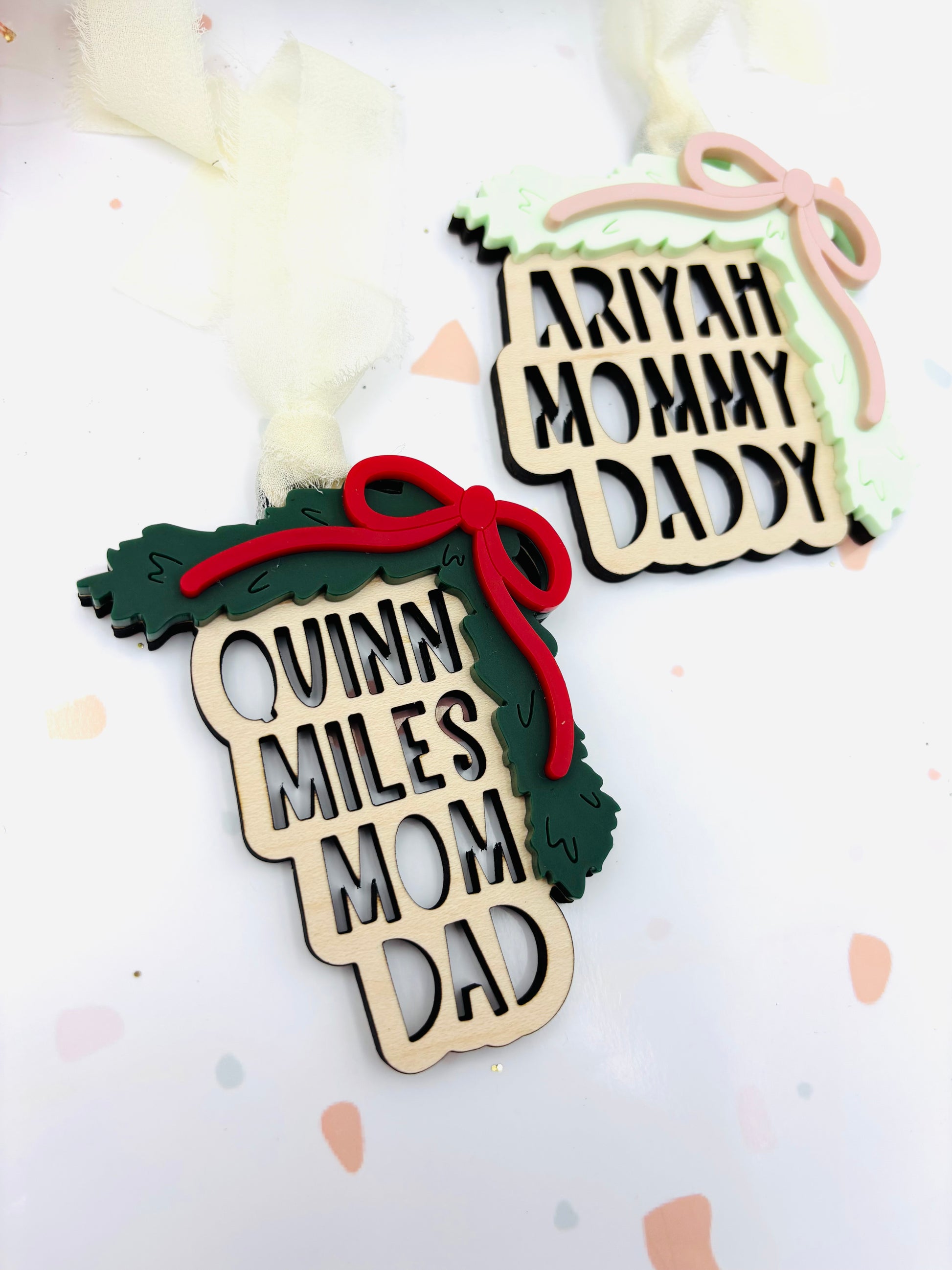 Each ornament is laser cut and engraved with precision, creating a layered design that’s as meaningful as it is beautiful. Hang it proudly on your tree or gift it to parents and grandparents for a heartfelt reminder of the ones they love most.