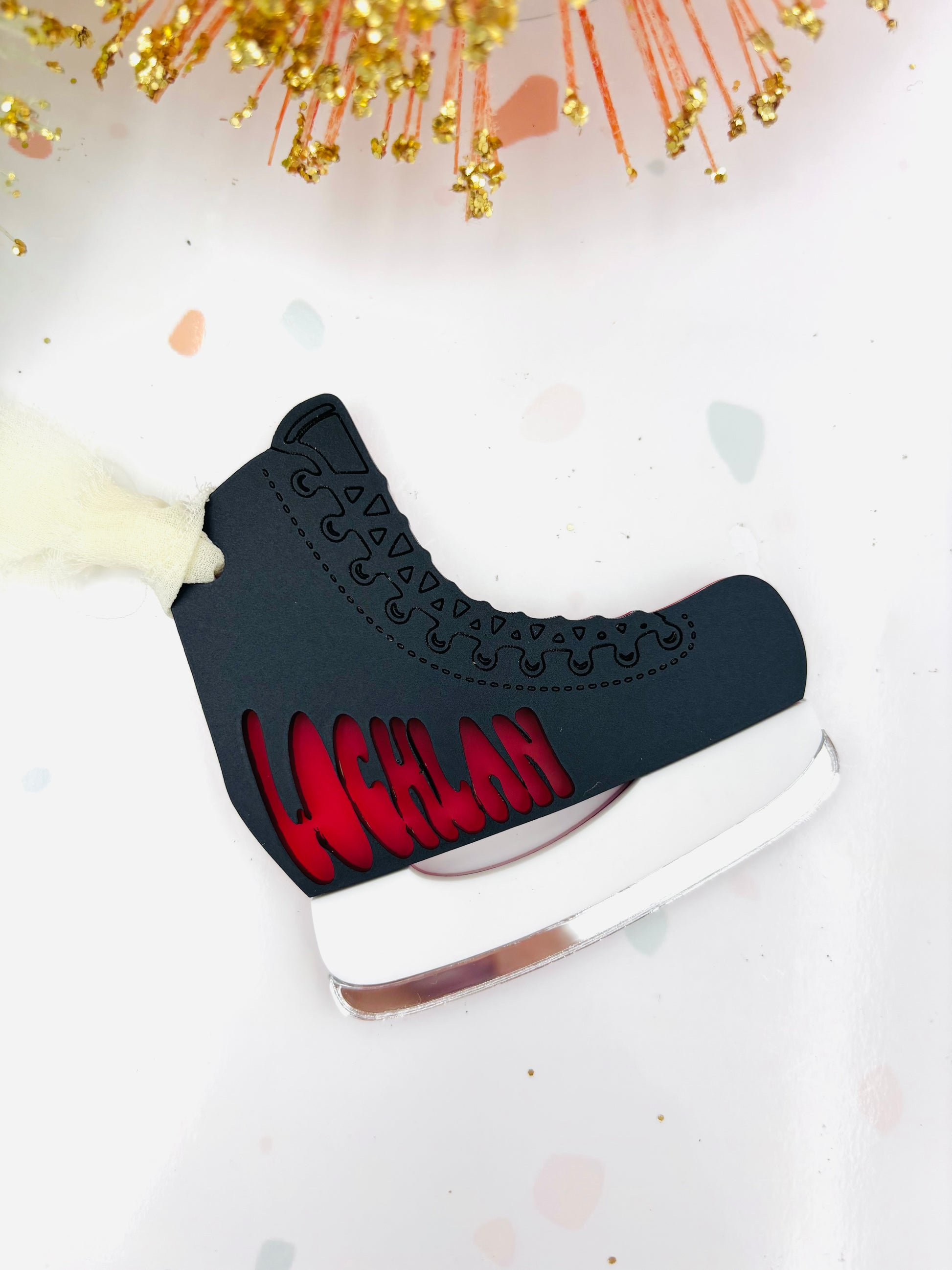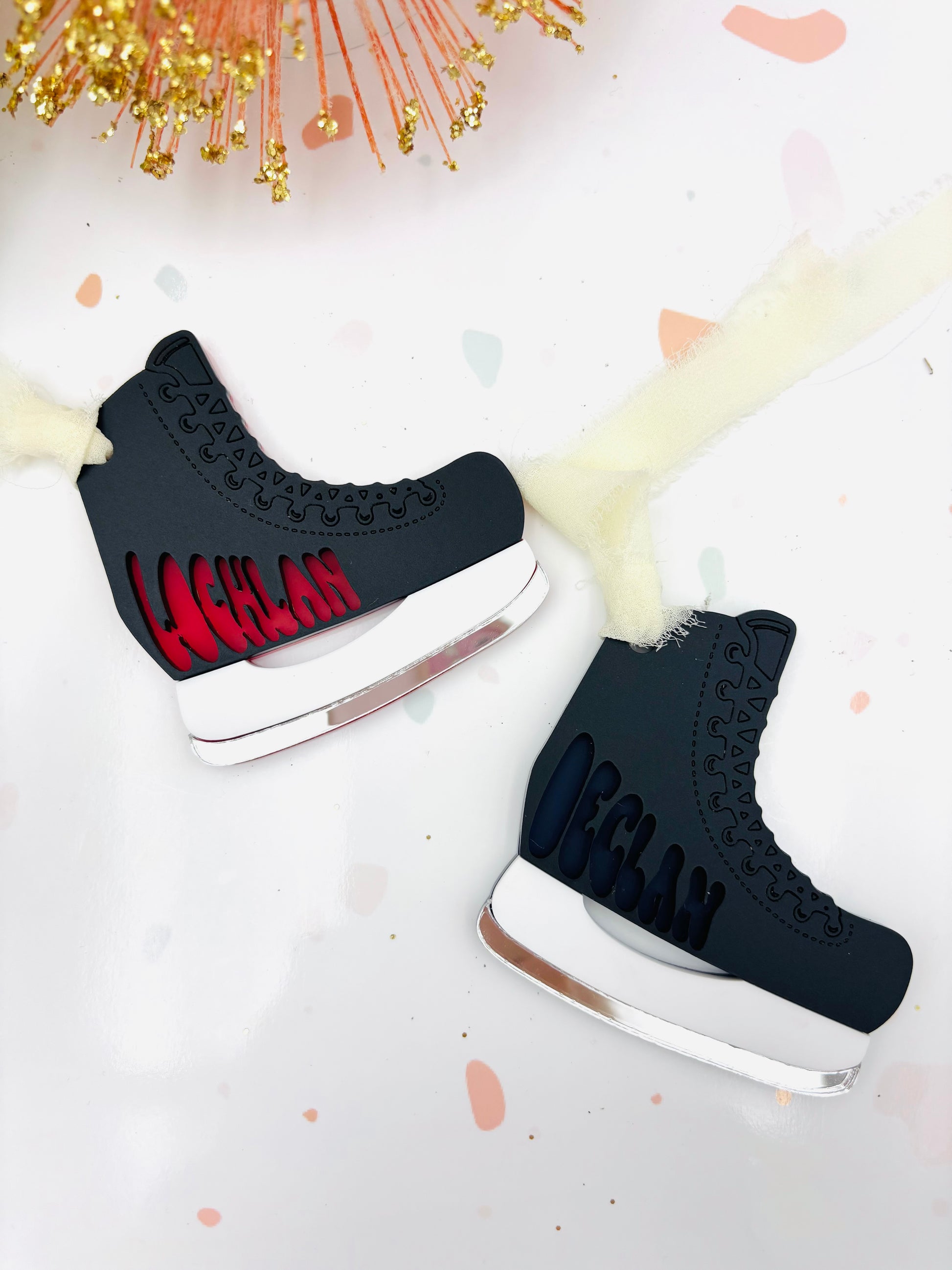 Celebrate the season with a touch of winter magic! This laser-cut hockey skate ornament captures the elegance of the ice in timeless detail — the perfect gift for skaters, coaches, or anyone who loves the rink.